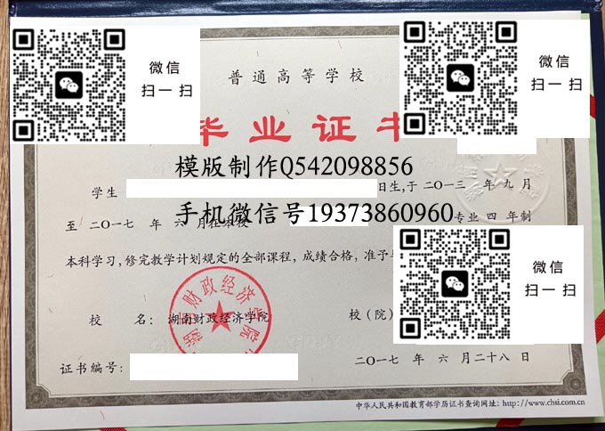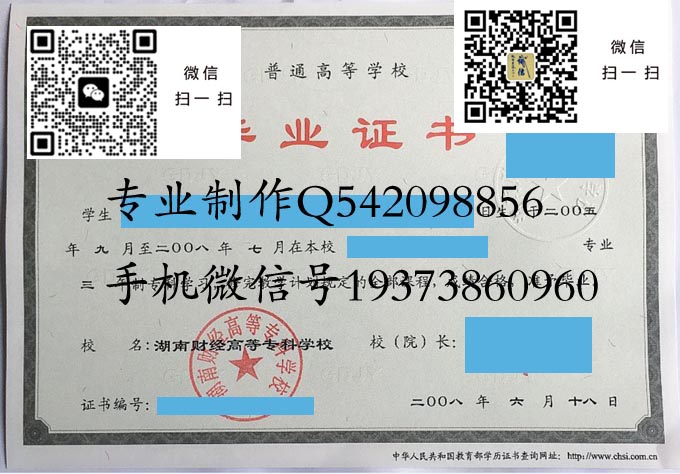 湖南财经高等专科学校历年毕业证样本