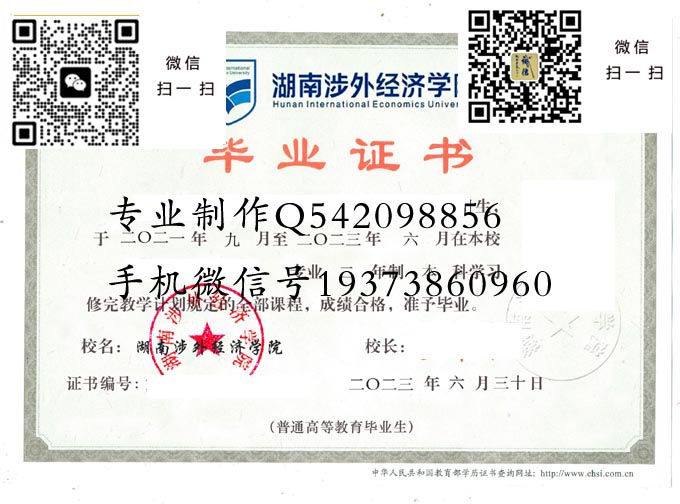 湖南涉外经济学院毕业证编号前五位、学校国际代码:12303。