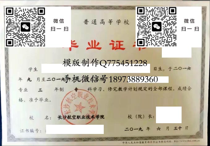 长沙航空职业技术学院毕业证样本