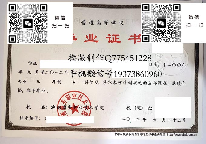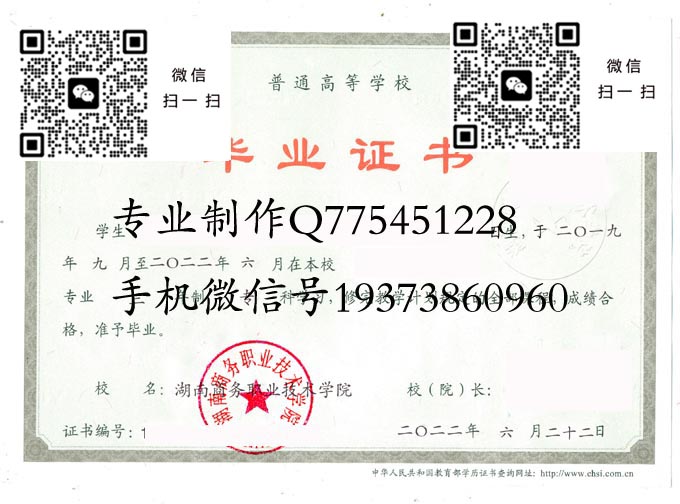 湖南商务职业技术学院历年毕业证样本