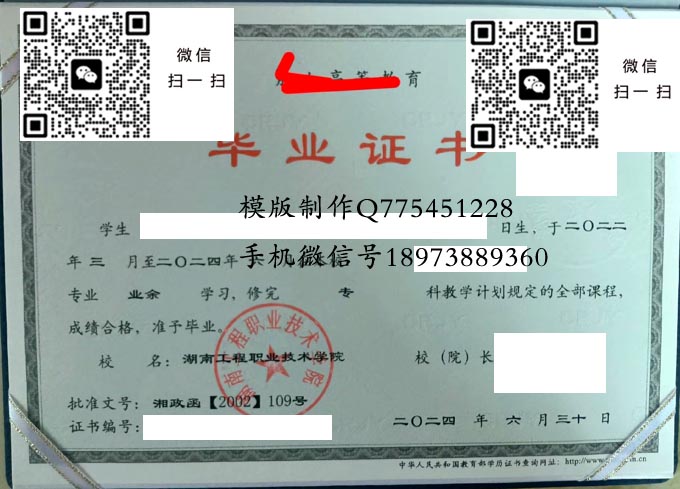 湖南工程职业技术学院历年毕业证样本