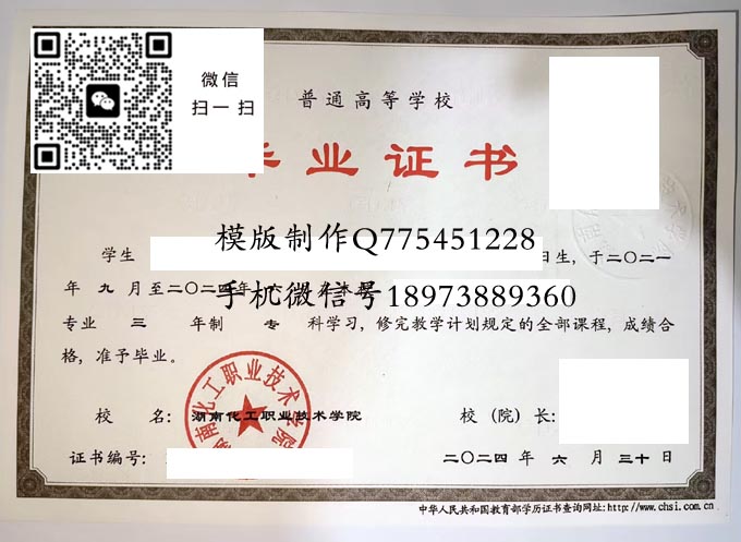 湖南化工职业技术学院历年毕业证样本
