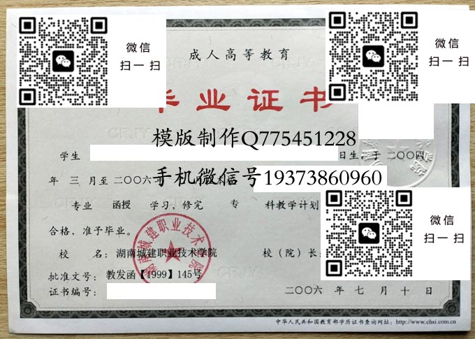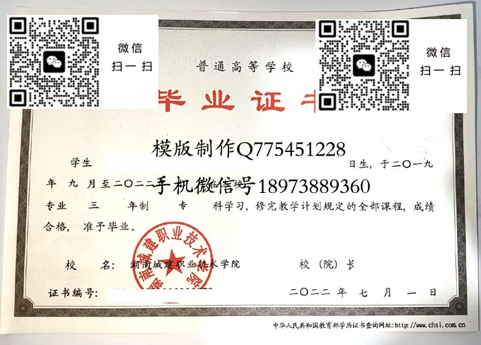湖南城建职业技术学院历年毕业证样本