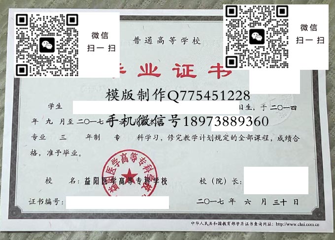 益阳医学高等专科学校历年毕业证样本